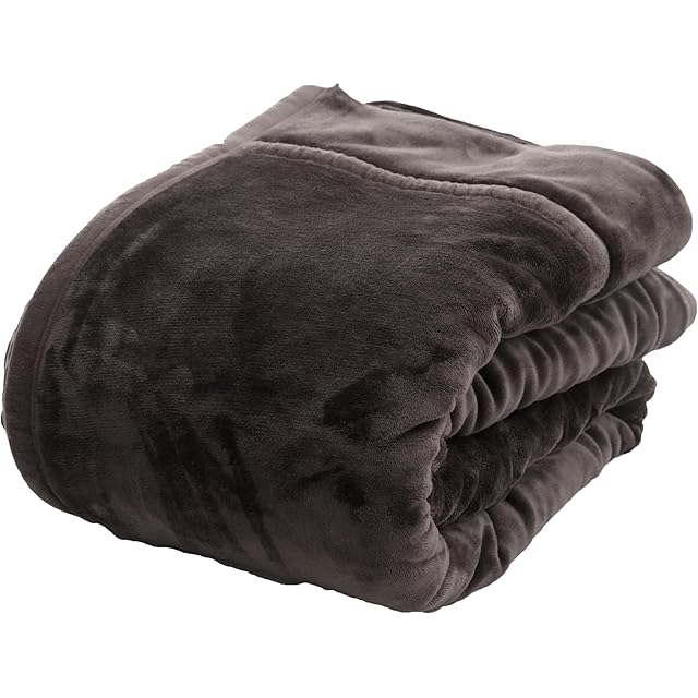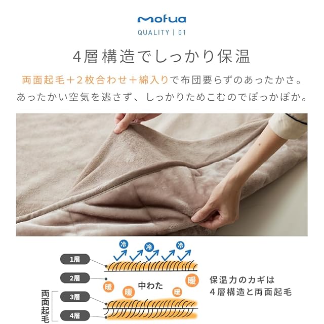 AQUA(アクア) 綿入り 毛布 厚手 ブランケット 冬 mofua モフア シリーズ シングル (140×200cm) チャコールグレー 4層構造 2枚合わせ 衿付き 56980168
