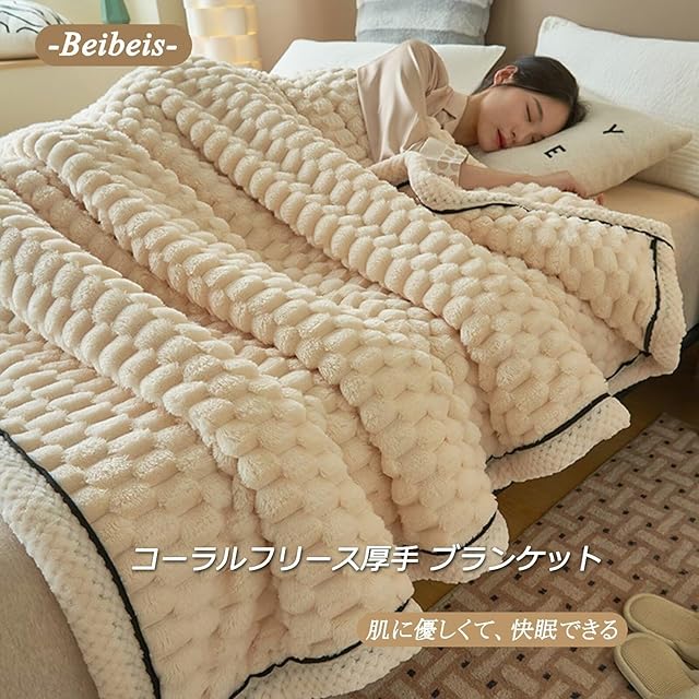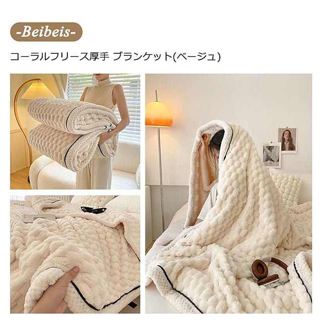 コーラルフリース両面ブランケットBlanket毛布シングル 柔らかいふわふわ軽量洗える大判ブランケット,マイクロファイバー厚手 吸湿発熱 静電気防止ひざ掛け ブランケット秋冬用防寒オールシーズン掛け毛布。(ベージュ,長さ200cm×幅さ180cm)