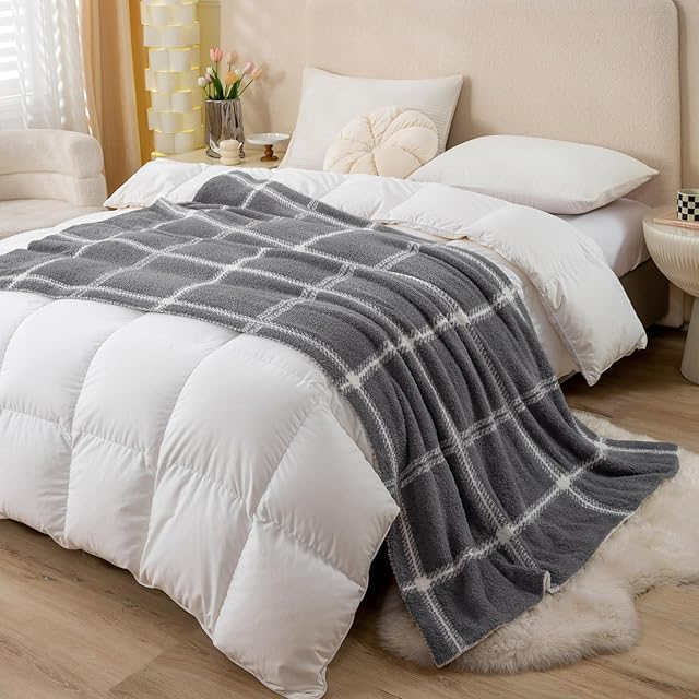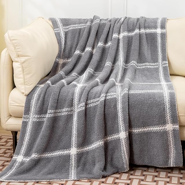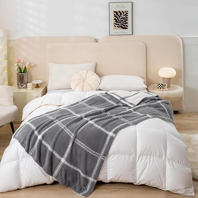 Mokoya おしゃれ ブランケット ふわもこ 毛布 可愛い 夏用 タオルケット シングル リバーシブル 掛け毛布 膝掛け 大判 プレゼント (チェック柄グレー, 130x180cm)