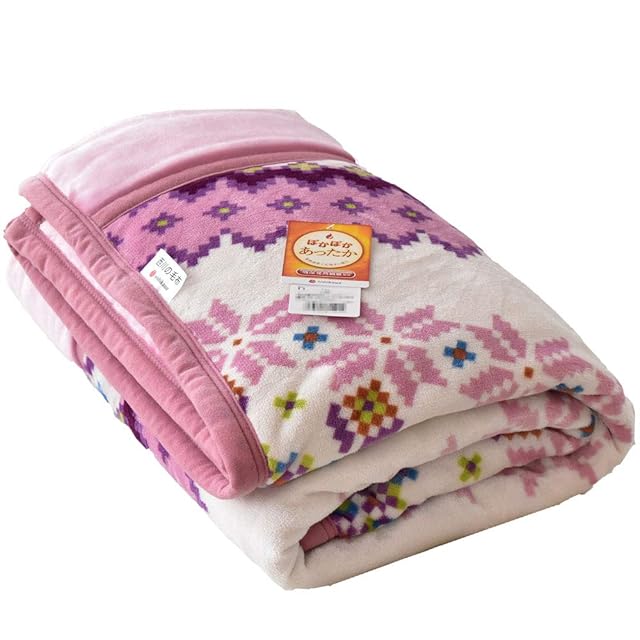 西川 毛布 シングル 【吸湿発熱わた入りであったか!】 2枚合わせ 掛け毛布 140×200cm ノルディック柄 ピンク 吸湿発熱わた入り あったか 衿付き フランネル 洗える 軽量 ブランケット 秋 冬 冬用 かわいい ふんわり もうふ