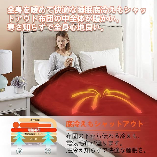 【様々なシーンに活躍】冬には電気ブランケットとして、春と秋には普通の毛布としてご利用いただけます。電熱毛布は膝掛け、肩掛け、ひざ掛け、敷きとして使用可能で、寒い季節の休憩、家で映画を見る場合にも最適。就寝時だけでなく、普段はひざ掛けなどとして使用できます。昼寝のために腰を温めるベッド毛布としても使えます。冬キャンプ、キャンプ、車、家、オフィスなどに最適です。