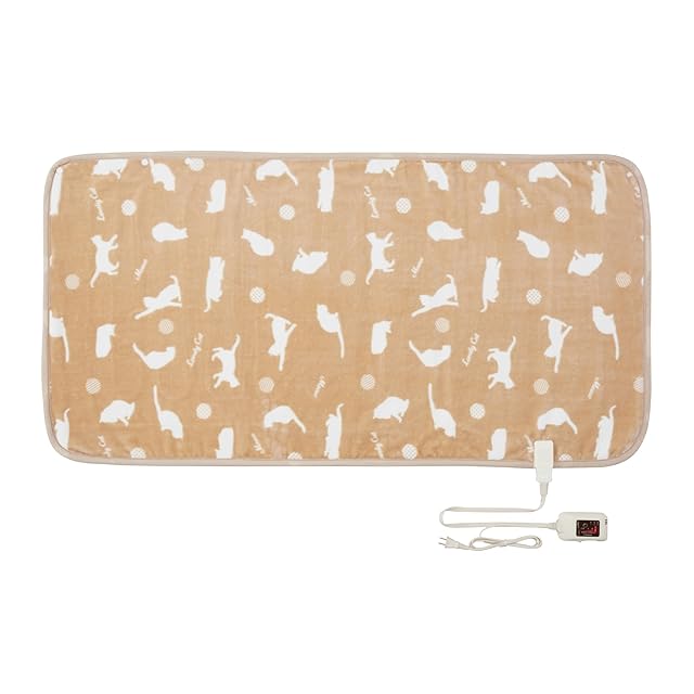 Sugibo(スギボー) 洗える あったか 電気ブランケット 日本製 電気ひざ掛け パーソナルサイズ 70×140㎝ 切り忘れ防止タイマー付き SB-H502(Bca) 猫柄ベージュ