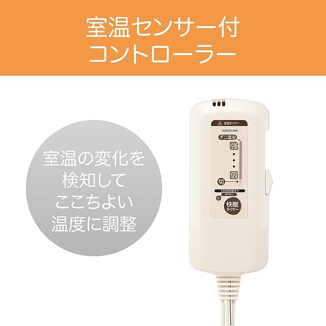 快眠タイマー搭載:心地よく眠れるようにタイマーが通電コントロール、就寝中に熱くなりすぎることを和らげます