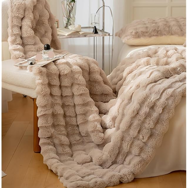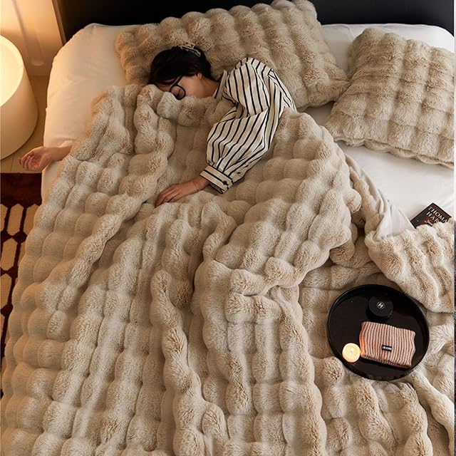 SUKAAGO ふわとろ毛布 シングル 冬用 厚手 ふわとろ 毛布 2枚合わせ もこもこ毛布 あったか ブランケット とろとろ 掛け布団 ふわふわ 布団 100x160cm 柔らかく肌触 暖かい 極温 静電気防止 洗える 吸湿速乾 抗菌防臭 (ベージュ,160*200cm)