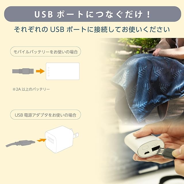 【様々なシーンで使えるUSB暖房】ACアダプターやモバイルバッテリーなど、USB電源があれば、いつでもどこでも使用可能です。オフィスやテレワーク時の寒さ対策はもちろん、キャンプやスポーツ観戦などアウトドアでも使用できて便利なアイテムです。