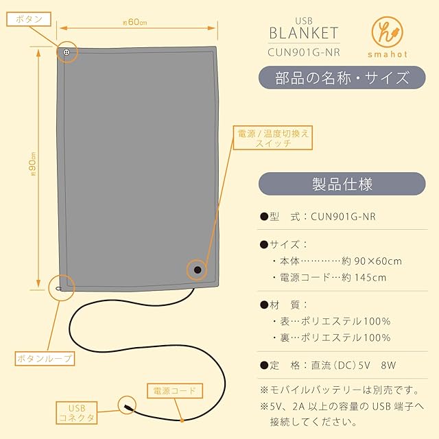 【高い安全性のUSB暖房】当社は電気暖房家電メーカーとして、高品質で安全・安心なものづくりを行っております。そのノウハウを生かした「smahot」シリーズは、ヒーターの断線検知と過熱防止センサーの搭載など、当社独自の設計と厳しい試験により安全性を追求しています。