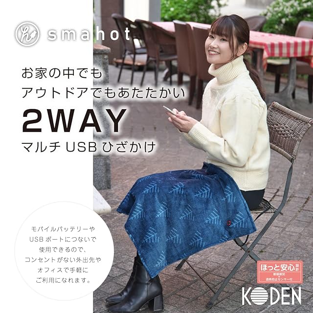 広電(KODEN) USB 電気ひざ掛け コードレス 洗える アウトドア対応 2WAYマルチ 速暖 90×60cm ネイビー CUN901G-NR
