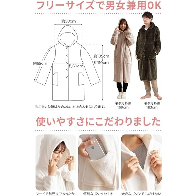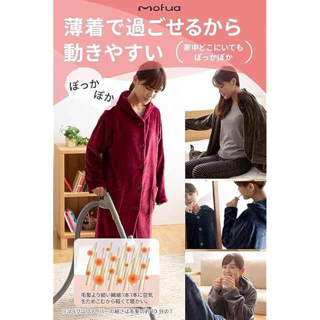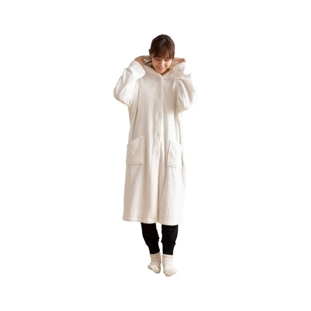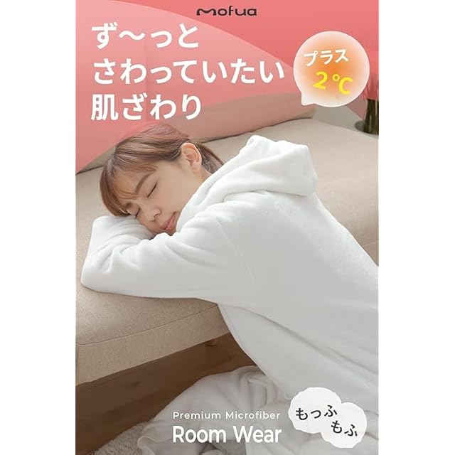 [アクア] mofua (モフア) 着る毛布 プレミアムマイクロファイバー (あったか 発熱タイプ +2℃) フードタイプ ルームウェア L (着丈125cm) 男女兼用 スノー 60152308