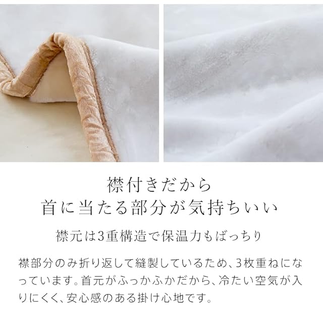 眠りのひろば ふとんの江崎 【西川】 毛布 シングル 2枚合わせ毛布 ハイボリューム 極厚2.4kgタイプ 厚手 マイヤー合わせ毛布 暖かい オーロラ 衿付き (シングル/ベージュ)