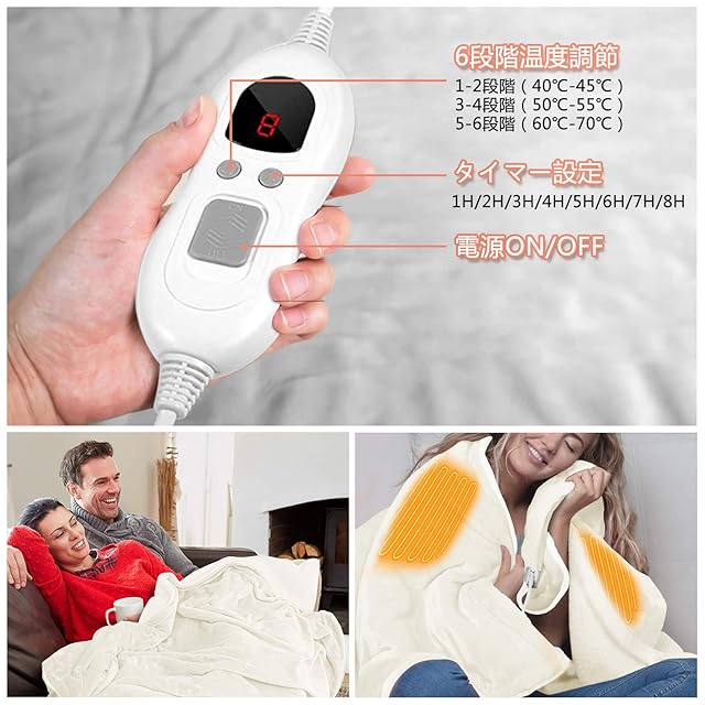 【様々なシーンに活躍】冬には電気ブランケットとして、春と秋には普通の毛布としてご利用いただけます。電熱毛布は膝掛け、肩掛け、ひざ掛け、敷きとして使用可能で、寒い季節の休憩、家で映画を見る場合にも最適。就寝時だけでなく、普段はひざ掛けなどとして使用できます。昼寝のために腰を温めるベッド毛布としても使えます。冬キャンプ、キャンプ、車、家、オフィスなどに最適です。
