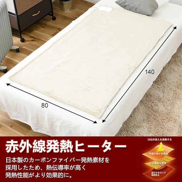 【優れた防寒性】 145x80cmサイズ肩から足にかけ、全身を効率良く暖めるのにちょうどいいサイズ。電気毛布に内部のヒーター部分は炭素繊維加熱線を採用、電源オンにすると、毛布全体がじんわり暖まり、床からの冷気を電気毛布が遮り、布団の中に通しません。布団に入った瞬間、温かさが身体を包み込み!寒い季節でも温もりを感じできます!