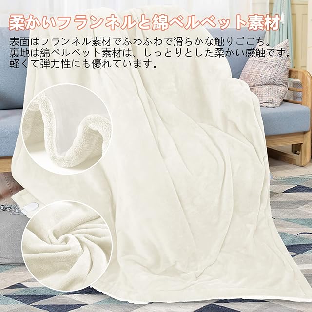【高品質の素材】 電気ブランケットの表面は高品質ふかふかのフランネル素材を採用し、より暖かさを感じられます。極細の織維が温かい空気を溜め込んで保温、電気毛布の効果と相まって温かさを維持しやすくなり。冬の時期に毛布のグランド部分に静電気抑制効果のあるカーボン糸を使用。表面はやわらかフランネル、裏面はプードルタッチの生地を使用しています。2つの手触りを楽しめるよくばりな毛布です。