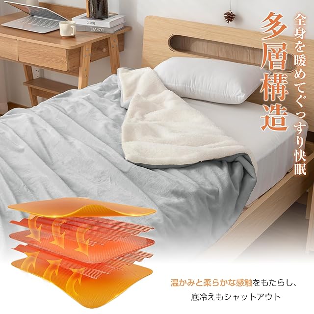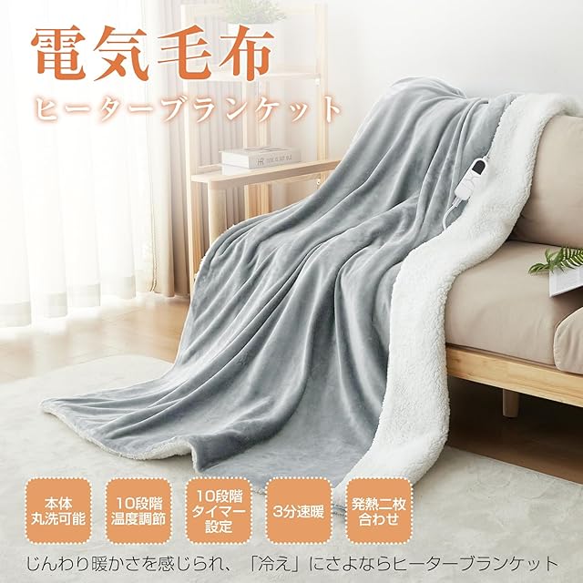 Housecover 電気毛布 掛け 敷き 【両面使用可能:フランネル+シープボア】 3分速暖 電気ひざ掛け 洗える 10段階温度調節可 10段階タイマー 頭寒足熱 ダニ退治 省エネ 丸洗い可 室温センサー 暖房器具 PSE認証済み 180×130cm グレー