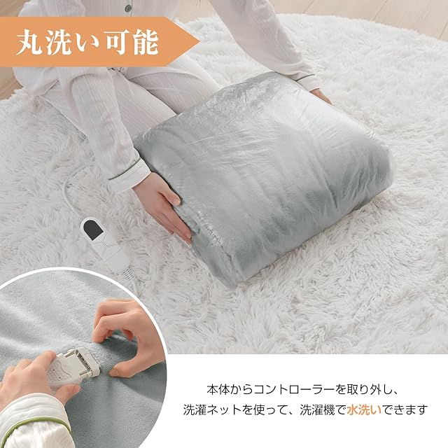 【本体丸洗いOK】本製品は、コントローラーを外すことで洗濯機で丸洗いが可能です。ダニ退治機能も搭載されておりますので、ダニ退治後に丸洗いすることで清潔にご使用になれます。※洗濯の際は、洗濯ネットをご使用ください。※コントローラーを外せば、縦型洗濯機で洗えます。縦型洗濯機を使用してない方は、軽く手洗いしてください。