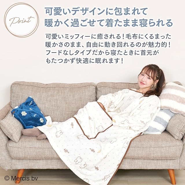 【ミッフィー シリーズ 着る毛布】 みんなに愛される可愛いミッフィーがデザインされた着る毛布が登場!ふわふわの質感とミッフィーの愛らしさが絶妙にキュート。着るだけで癒されるアイテムです。