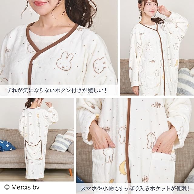 [ルアンナジェナ] 着る毛布 ミッフィー miffy ルームウェア レディース 部屋着 着る ブランケット ふわもこ 誕生日 プレゼント ギフト QWMIB06 (オフホワイト(月柄))