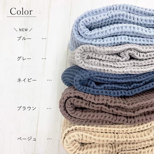 注意事項※ご家庭でお洗濯できます。 ※風合いを長持ちさせる為、お洗濯の際は洗濯ネットをご使用ください。 ※ワッフル織りの特性上、お洗濯後に多少縮むことがあります。 ※お洗濯後、干す際に少し伸ばしながら干して、形を整えて下さい。