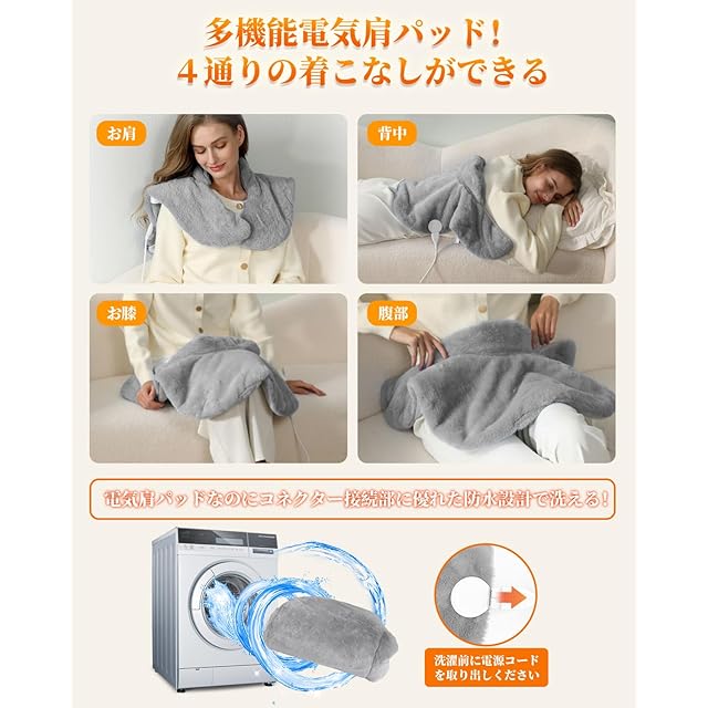 【水洗いok&完備な保護、安全性満載】 ❶コネクター接続部には優れた防水設計で、手洗いを選んでも洗濯機を選んでもいいです。洗濯する前に、製品説明書の注意事項を読んでから洗濯してください。❷暖房パッドの過熱・電圧異常の場合は自動的に電源を切る安全設計を施され、安全性がアップします。❸自動オフ機能:0.5H/1H/1.5H/2H/4H/6H自動OFFタイマー機能付き、切り忘れても安心、低温やけどの防止にも役たつ。子供やお年寄りがいる家庭でも安心・安全に利用できる。❹また、日本語取扱説明書、購入より1年間の品質を提供しております。万が一製品に不具合などが見られましたら、「注文履歴」→「出品者に連絡する」からお気軽にお問い合わせください。ご満足いただけるアフターサービスを提供できるよう、最善を尽くします!