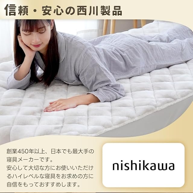 西川 敷きパッド セミダブル 冬用 メガオーロラ毛布 120×205cm ベージュ 四隅ゴム付き ダイヤキルト ハイボリューム ふわふわ あったか 洗える 敷き毛布 冬
