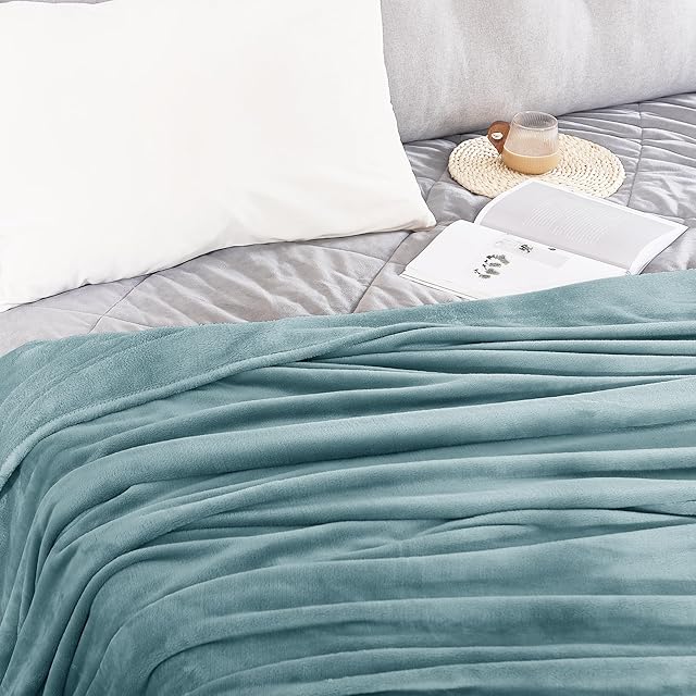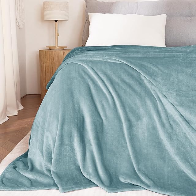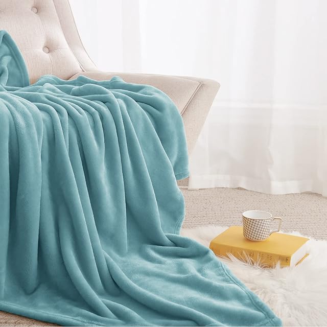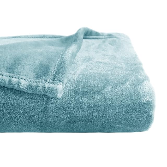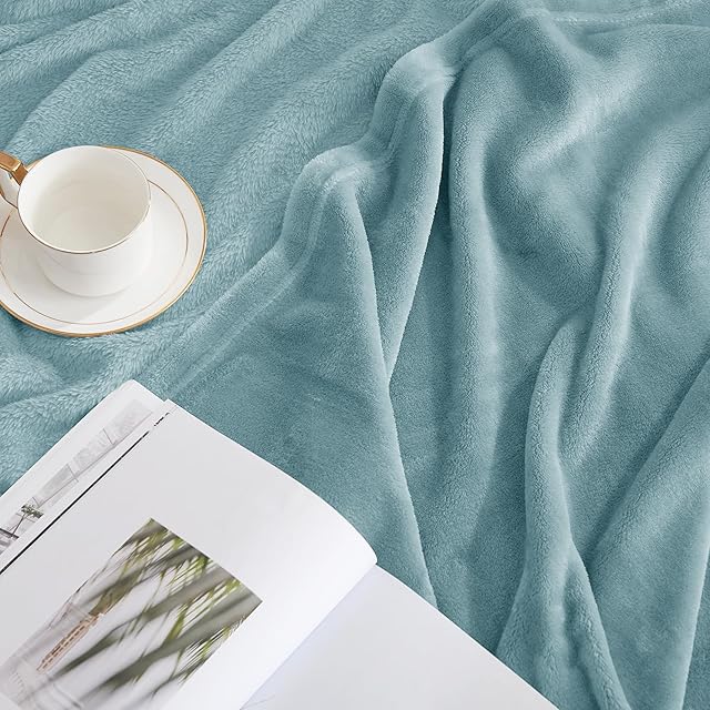 NICETOWN ひざ掛け 毛布 夏用 シングル 軽量 通気 フランネル ブランケット おしゃれ 薄手 無地 春夏 温かい 静電気防止 洗える マイクロファイバー エアコン対策 柔らかな肌触り 持ち運び便利 ヘイズブルー 70*100cm