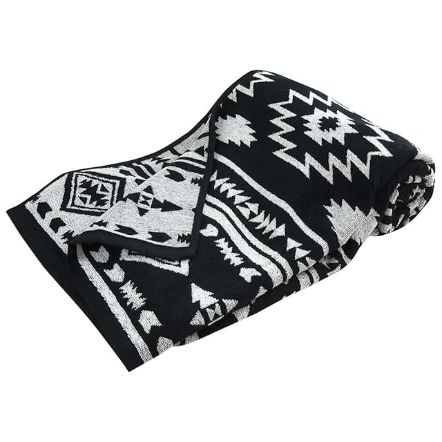 リヴェール タオルケット セミダブル エジプト綿100% オルテガ柄 ジャガード織 ソファーカバー 夏用 (ブラック 黒)