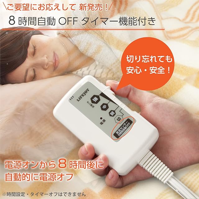 【8時間OFFタイマー】多くのお客様のご要望にお応えして、8時間OFFタイマーが搭載された電気掛敷毛布が新発売!8時間で自動的に電源が切れるようになっておりますので、電気代の節約はもちろん、切り忘れによる心配から解放されます。
