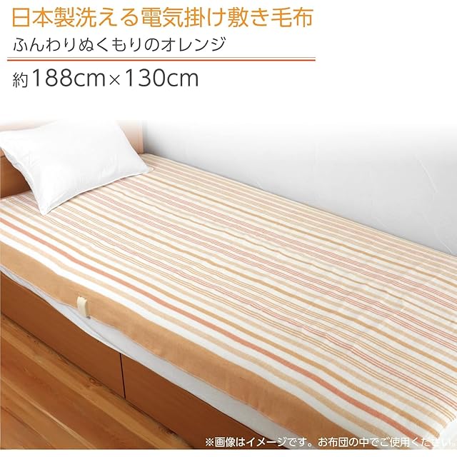 ライフジョイ 電気毛布 日本製 掛け 敷き 兼用 シングル オレンジ 188cm×130cm 洗濯可能 8時間OFFタイマー機能付 室温センサー付 頭寒足暖 やわらか JBK551G-D