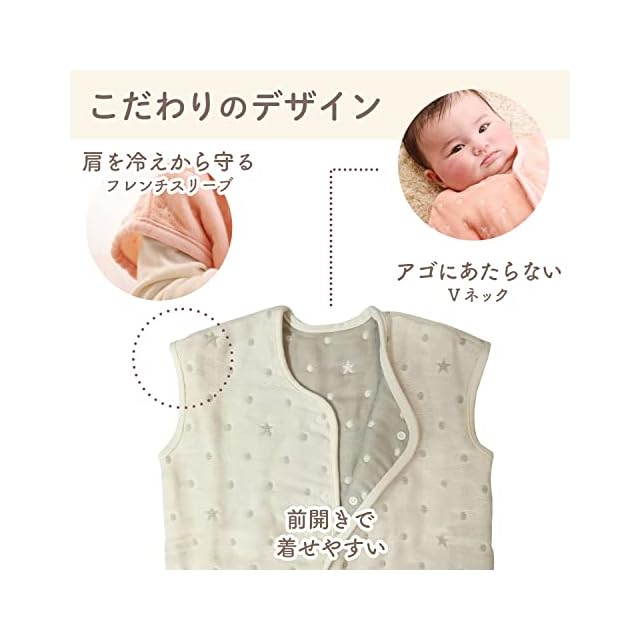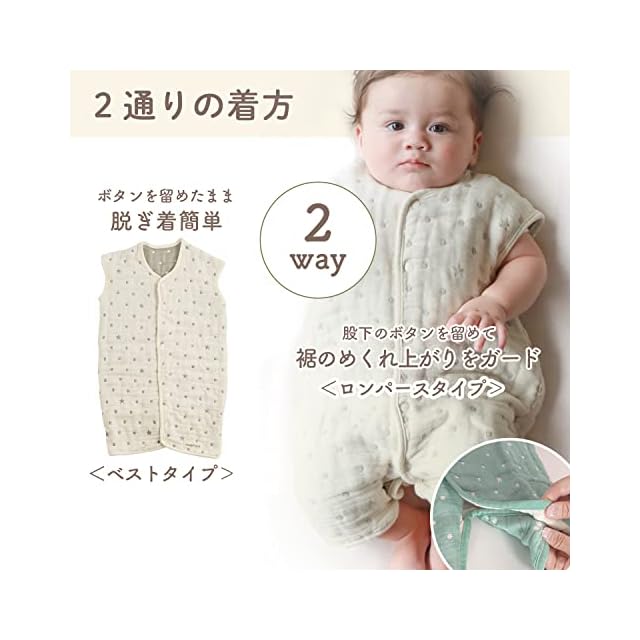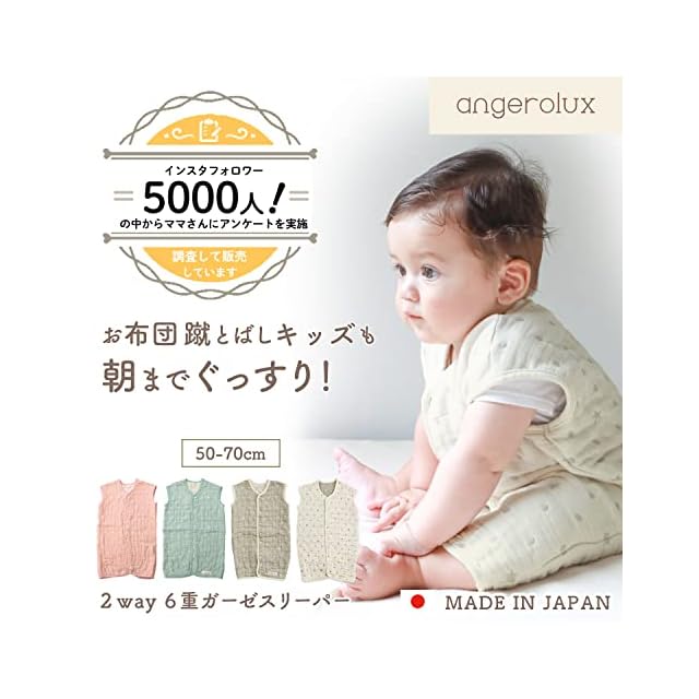 angerolux(アンジェロラックス) 通年 寝相悪い 寝冷え防止 通気性 【日本製】 2ウェイ 6重ガーゼ スリーパー キナリ/モスグレー 50-70cm