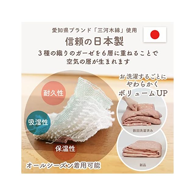 6重ガーゼは一年を通して快適に使える素材。ふんわりとお子様を包み込みます
