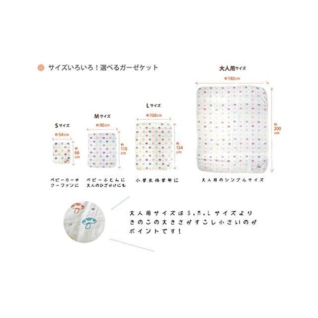 color:1-1) Hoppetta / champignon pattern:単品 size:Mサイズ (x 1) style:ふくふくガーゼ(6重ガーゼ)ケット: