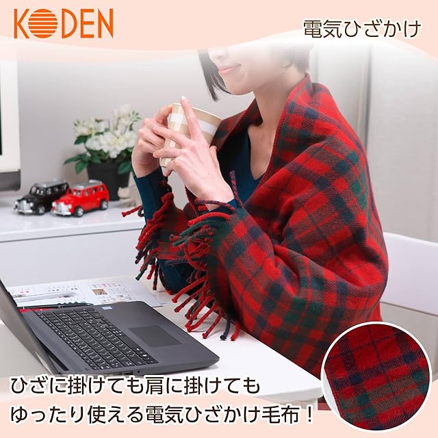 広電(KODEN) 電気毛布 ひざかけ 140×82cm ケープ レッド 洗える ダニ退治 スライド温度調節 CWN142H-RC