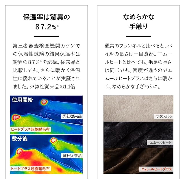 エムール 超極暖毛布 毛布 クイーン グレージュ エムールヒートプラス 洗える 発熱素材 保温率87.2%
