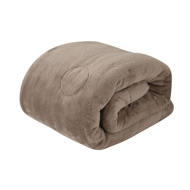【サイズ】クイーン:約200×200cm 【組成】表地:ポリエステル100%(280g/m² ロングパイルフランネル8mm)/グランド部分:ポリエステル50%、レーヨン50%(エムールヒートプラス使用)/中綿:ポリエステル100%/裏面:ポリエステル100%(280g/m² ロングパイルフランネル8mm)