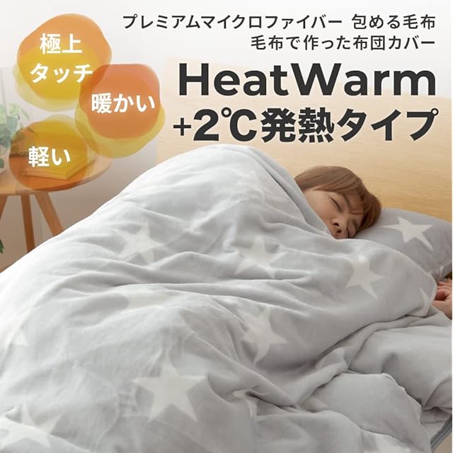 AQUA (アクア) mofua (モフア) 毛布 (掛け布団カバー) プレミアムマイクロファイバー 布団を包める毛布 Heatwarm 発熱 +2℃ タイプ ダブル 星柄グレー あったか ブランケット 掛けカバー 冬用 601703Q7