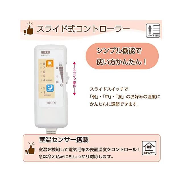 【室温センサー搭載で急な冷え込みにも対応】周囲の室温を検知し、自動で表面温度を調節する室温センサーを搭載。急な冷え込みでも自動で温度を調整して、いつでも快適にお使いいただけます。また電源を入れてから12時間後、自動で電源がOFFになる12時間OFFタイマーもありますので、切り忘れはもちろん、電気代の節約にもなります。