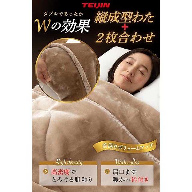 【どこまでもあったかく、どこまでも気持ちよく】毛布が2枚合わせになっているので、中にあったかい空気を閉じ込めて逃さないだけでなく、襟元が3重構造の襟付き仕様で首まわりもあったか。ヘムがお肌に当たらないので毛布の気持ちいい肌ざわりを心ゆくまで楽しめます。毛布の端処理は高級感に溢れたチンチラヘム仕様。細部まであったかさと肌ざわりにこだわった毛布です。安心と信頼の証「TEIJIN」タグ付きで、贈り物にしても喜ばれます。