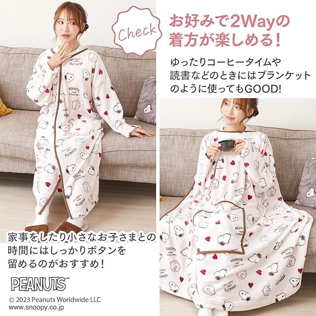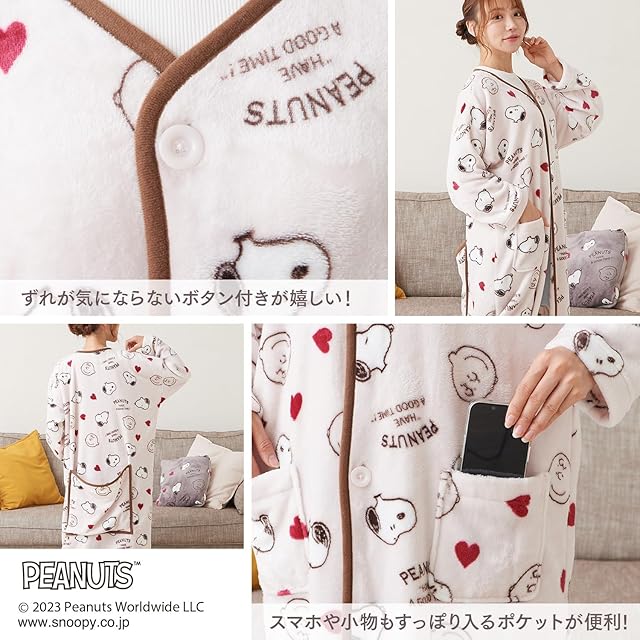 [ルアンナジェナ] 着る毛布 スヌーピー ルームウェア レディース 部屋着 着る ブランケット ふわもこ 誕生日 プレゼント ギフト QWSNB01 (さくら色)