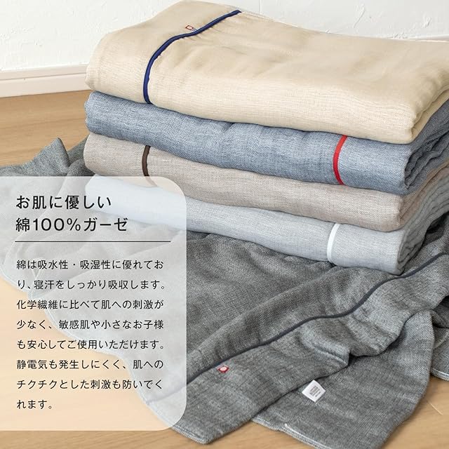 【春夏も快適に】やわらかな色合いが魅力のビレア。春夏も快適に眠れるサラサラでフワフワとした、やわらかな肌触りのガーゼケット。パイルがないので普通のタオルケットでは摩擦が気になる敏感なお肌の方にもオススメです。