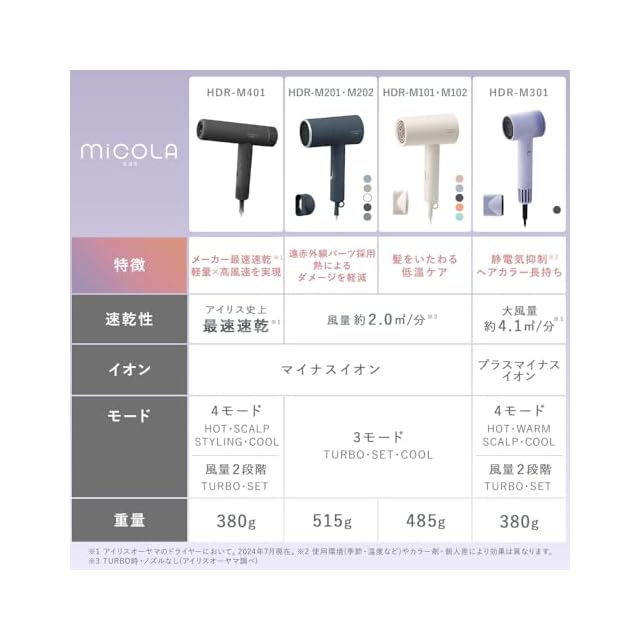 【軽量:380g】重さは約380gで350mlのペットボトルほどの軽さで、ドライヤーの重さによる使用中のストレスを軽減します。軽量のため旅行の持ち運びにも最適です。従来品のHDR-M201 と比べると約30%も軽量化されています。【高級感漂う素材/グラデーション】高級感が漂うマットな素材で、ダークグレー/ラベンダー/の2カラー展開。また単色ではなくトレンドのグラデーションカラーを採用しています。毎日使うアイテムだからこそ、心がときめく感覚を提供したいという想いから、デザイン性にこだわっており、インテリアにも馴染むおしゃれなドライヤーです。