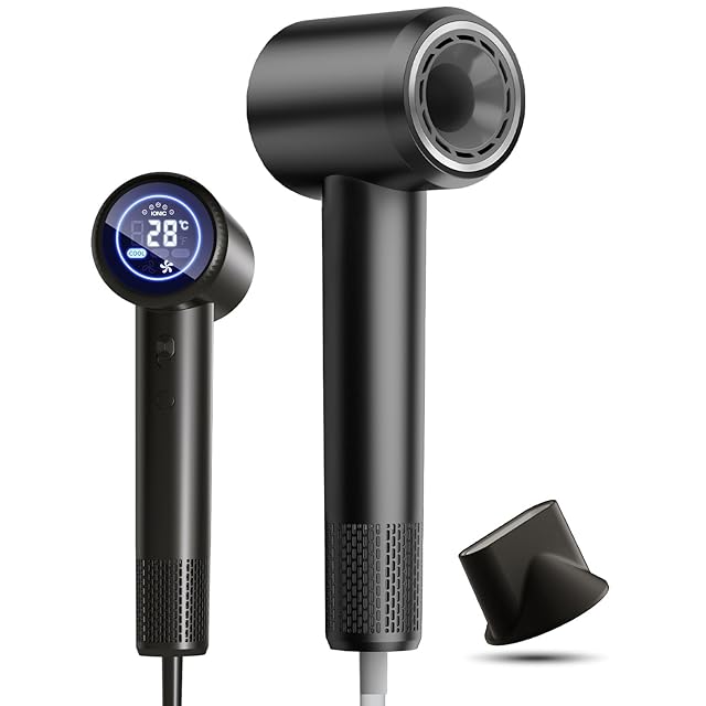 RUNCTY ドライヤー 大風量【業界TOP・強化版ブラシレス・10億マイナスイオン】高速ヘアドライヤー 速乾 高濃度イオン 静電気抑制 恒温ヘアケア 温冷風自動切替 LED液晶画面 3段階温度調節 2段階風速 静音ドライヤー 過熱保護 サロン級仕様 美髪 軽量 コンパクト マグネット式ノズル付き サロン/家庭/出張用 プレゼント(ブラック)