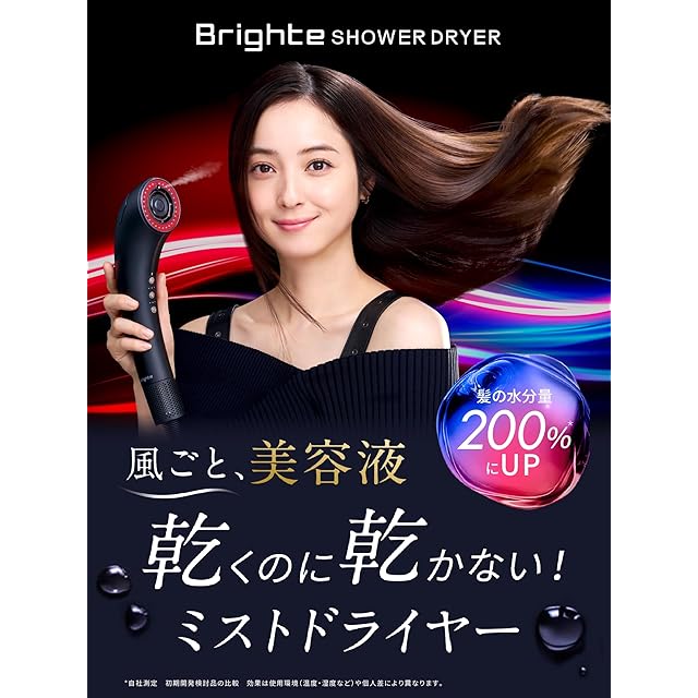 【佐々木希 アンバサダー】Brighte ブライト SHOWER DRYER シャワードライヤー ヘアドライヤー 大風量 速乾 ナノミスト搭載 次世代型 軽量 美容液 美容家電 美髪 美容