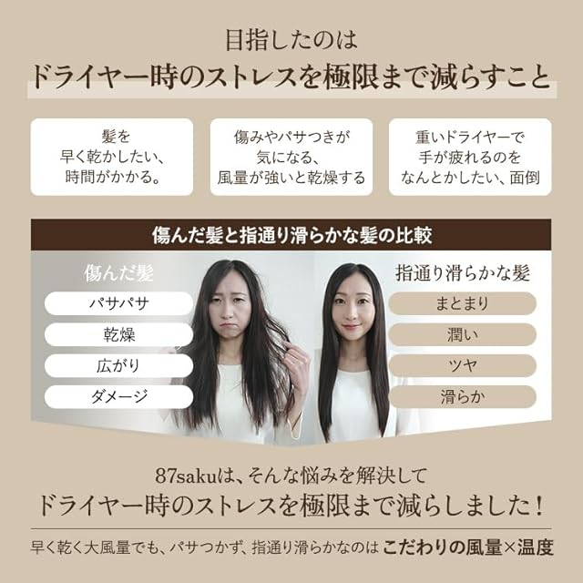 商品名:87saku ハナサク ヘアドライヤー 大風量 速乾 軽量 マイナスイオン ツヤ髪 ドライヤー