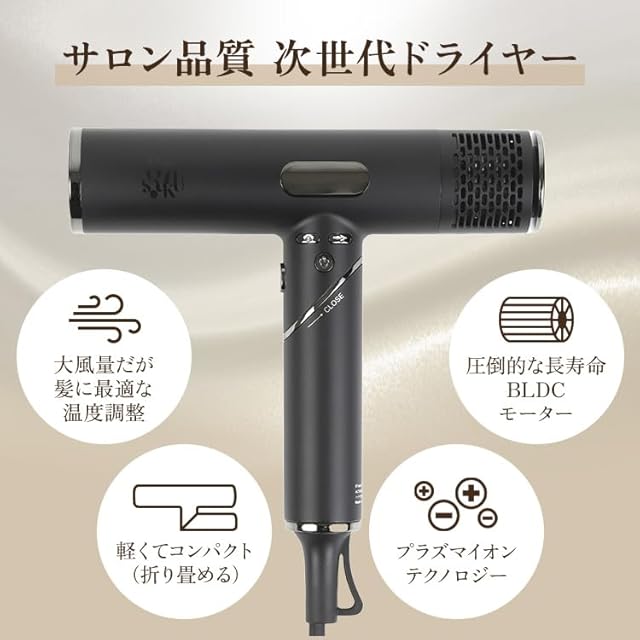 サロン品質の次世代ドライヤーで、朝のヘアケアが変わります。圧倒的な長寿命を誇るBLDCモーター搭載で、大風量でありながら髪にやさしい温度調整を実現。4段階の温度設定と3段階の風量調節で、あなたの髪質に最適なブローが可能です。わずか343gの超軽量設計で、長時間の使用でも腕が疲れにくく、折りたたみ可能で旅行にも便利。さらに、プラズマイオンテクノロジーにより、静電気を除去し、髪の潤いを守りながら、艶やかで美しい仕上がりに。充実したアタッチメント付きで、様々なヘアスタイリングにも対応。サロン帰りのような、まとまりのある美しい髪を毎日実現できます。