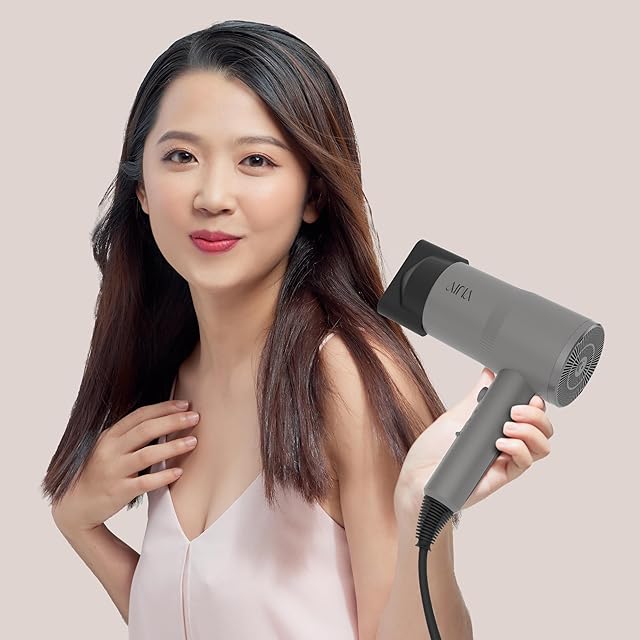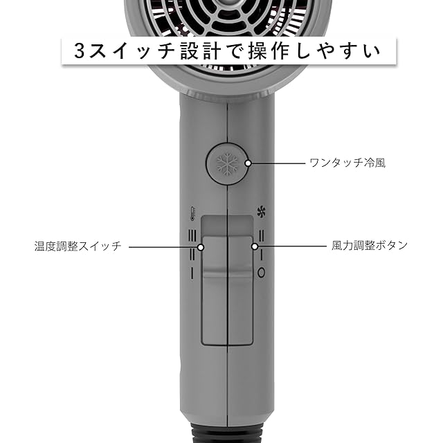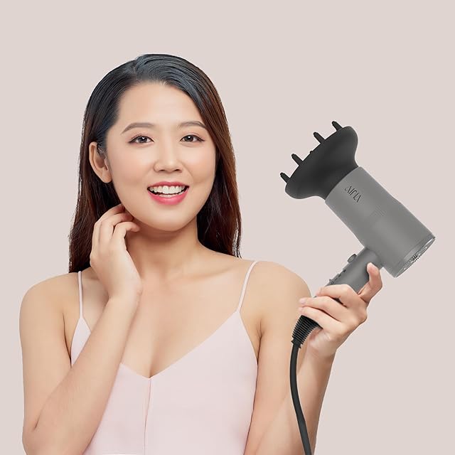 AINA ヘアードライヤー(ディフューザー付)女性用|先進のイオンテクノロジー、セラミックコーティング|コールドショット、ターボヒートで速乾、ツヤ出し(グレー)