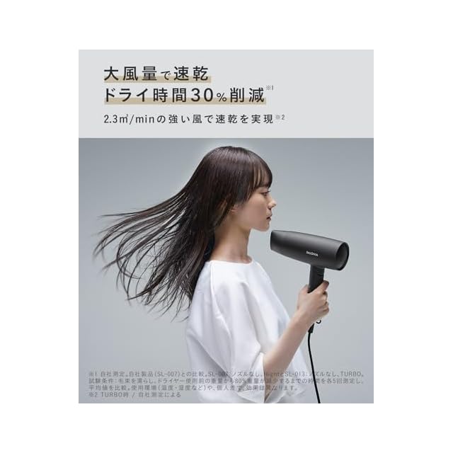 【2.3㎥/minの大風量】ドライ時間30%短縮を実現。面倒なドライ時間を短縮できる大風量ドライヤー