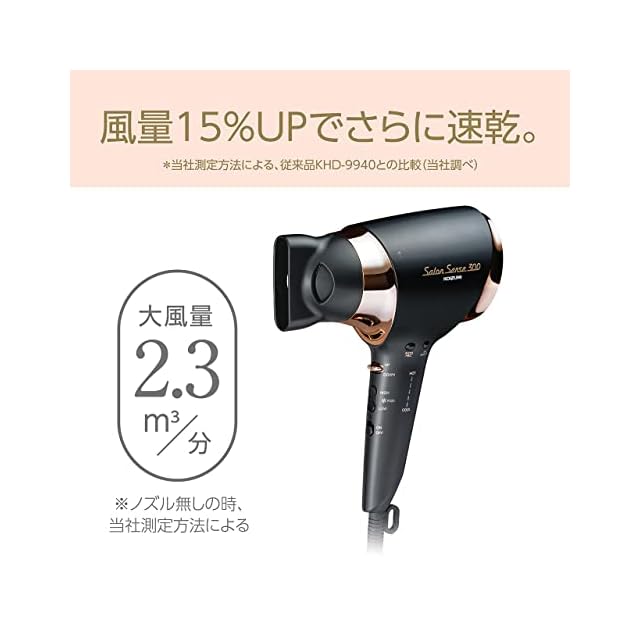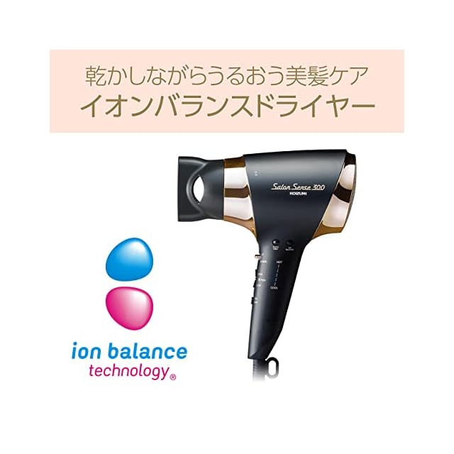 コイズミ ヘアドライヤー イオンバランス サロンセンス 300 温冷自動切替 大風量 速乾 6段階風量調節 5段階温度調節 ブラック KHD-9960/K