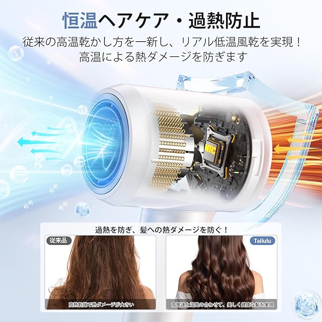 【安全品質の徹底追求&1年安心】 ▼PSE認証済み+温度過昇防止装置 ▼12ヶ月長期+1年間メーカー延長(合わせて2年間!!)Tailuluは購入日から安心の1年間のアフターサービスを提供しています。万一、製品使用故障|交換について「アカウントサービス」→「注文履歴」→「販売元」→「質問する」でお気軽にお問合せください。【パッケージ内容】ドライヤー本体*1、集風ノズル*1、日本語取扱説明書*1.【高級なプレゼント】速乾プロ仕様のヘアドライヤーは機能だけでなく、パッケージも高級感あり、母の日、敬老の日、誕生日、クリスマスや新年など大切な方へのプレゼントに最適。