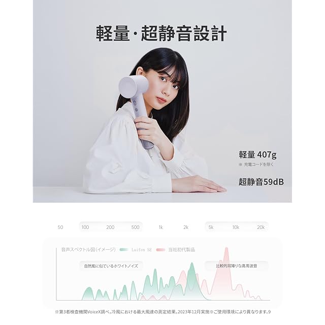 2億個のマイナスイオン:Laifen SE ヘアドライヤーは、マイナスイオン発生器を搭載し、髪に2億個ものマイナスイオンが瞬時に注入され、パサつきを解消し、髪本来のしなやかさを取り戻します。独自のマイナスイオンテクノロジーは、髪表面の水分を乾かしながらも、髪内部の水分を保持。(注意:Laifen SE ヘアドライヤーにはノズルアタッチメントは含まれていません)