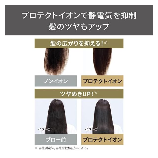 乾燥や髪摩擦による静電気の発生が、ドライヤーの課題。テスコム独自のプロテクトイオンは静電気を抑制し、 ワンランク上の美髪に導きます。