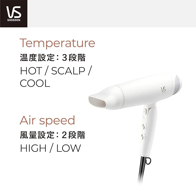 【風量・温度調節でスムーズ&自由にスタイリング】 3段階の温度調節(HOT-SCALP-COOL)と2段階の風量調節(HIGH-LOW)で自分好みの風に。